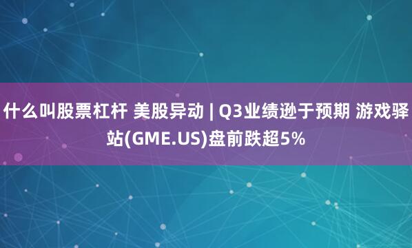 (原标题:美股异动 | Q3业绩逊于预期 游戏驿站(GME.US)盘前跌超5%什么叫股票杠杆)什么叫股票杠杆 智通财经APP获悉,周三,游戏驿站(GME.US)盘前跌超5%,报21.93美元。消息面上,该公司公布第三季度业绩,总营收为8.21亿美元,同比减少约4.5%,低于分析师预期的9.87亿美元;每股收益为0.13美元,亦低于预期的0...